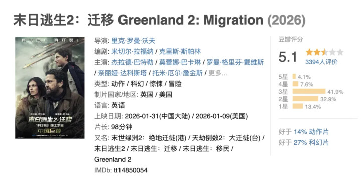 其实电影扑街的原因很简单,就是叙事非常老套没有新意,在豆瓣上的评分也只有5.1分,很难想象是一部大制作电影该有的品质啊。