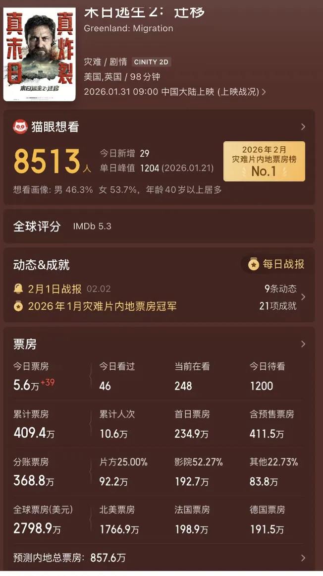 不过,该片上网播应该能回本,况且谢苗这一部电影应该只是“试试水”,2026年还有《怒火蔓延》和《火遮眼》等作品才是大菜,喜欢动作片的可以期待一下了。