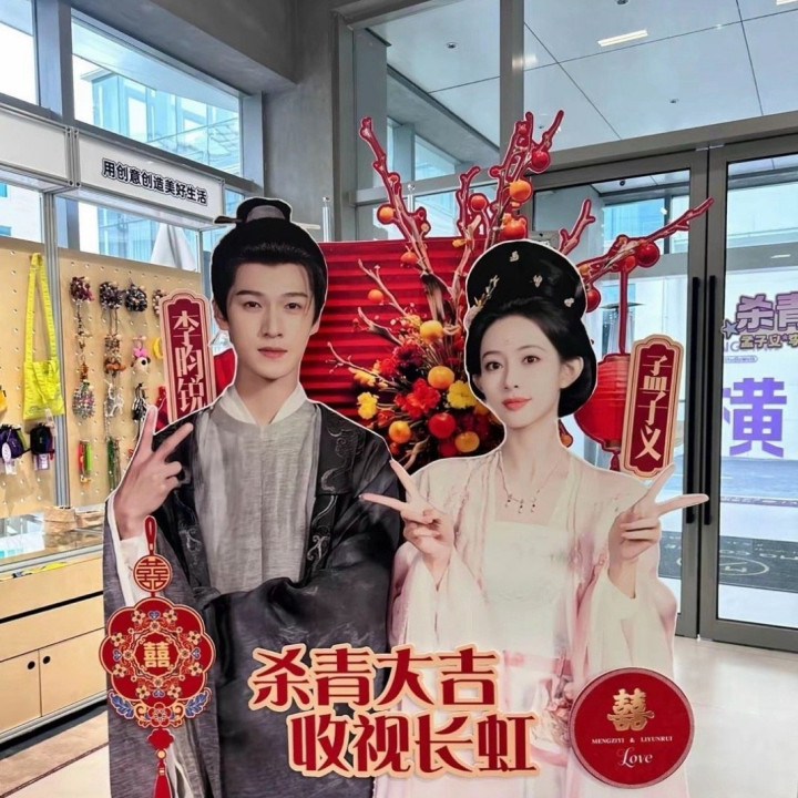 这场杀青宴的高光时刻,当属粉丝精心策划的豪华应援。孟子义粉丝为犒劳辛苦拍摄的全剧组,豪气承包了一场“烧烤盛宴”,6只烤全羊搭配4000根烤串,再加上清甜奶茶与实用定制伴手礼,兼顾仪式感与暖心细节,让现场充满烟火气。更有Lee Cooper、梦金园等多个代言品牌同步送上定制花束,CP粉则包下横店万盛街、国贸大厦等三处地标大屏,为期14天轮播两人互动视频,排面十足的应援被网友盛赞“暖心又有分寸”。