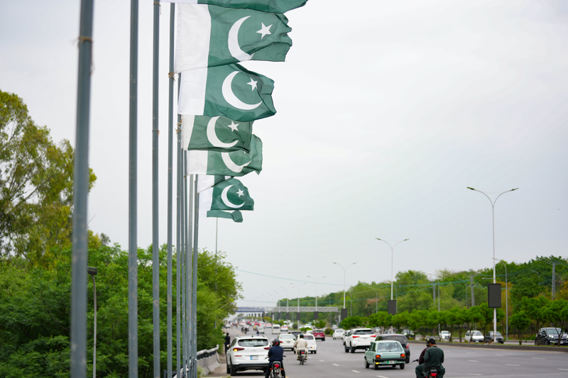 4月17日,在巴基斯坦首都伊斯兰堡,车辆从路上驶过。